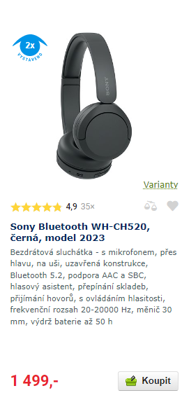 V poslední době jsem například kupoval sluchátka a pokud se rozhodnu něco nakoupit, většinou začínám vyhledávat na největším českém eshopu s elektronikou. Na tomto e-shopu jsem si sluchátka našel a cena byla: