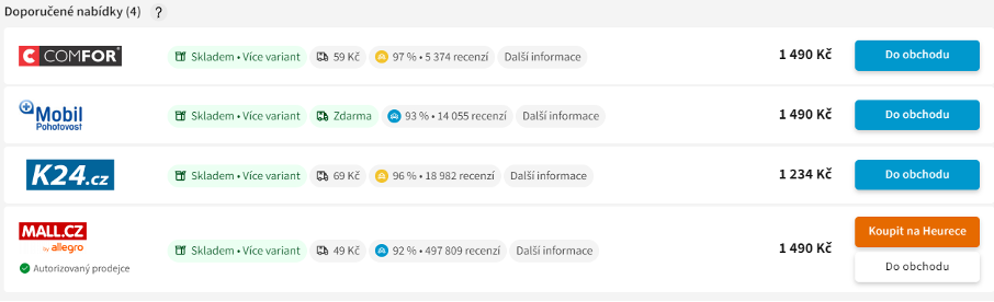 Zkusil jsem cenové srovnání právě přes jeden z výše uvedených portálů a z ověřeného e-shopu, který má 14 055 recenzí je cena stanovena na 1 234 Kč, což považuji za naprosto bezpečný nákup. Úspora je pak na stejném výrobku 265 Kč.
