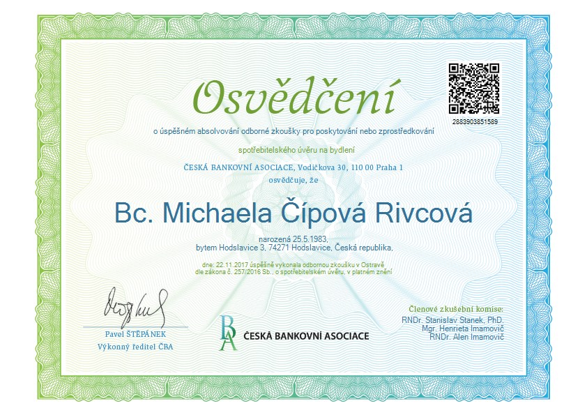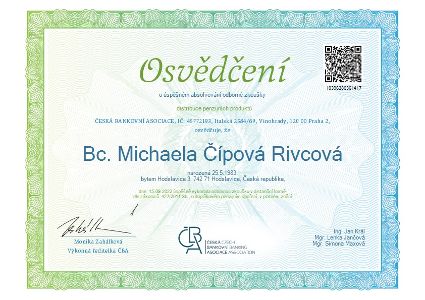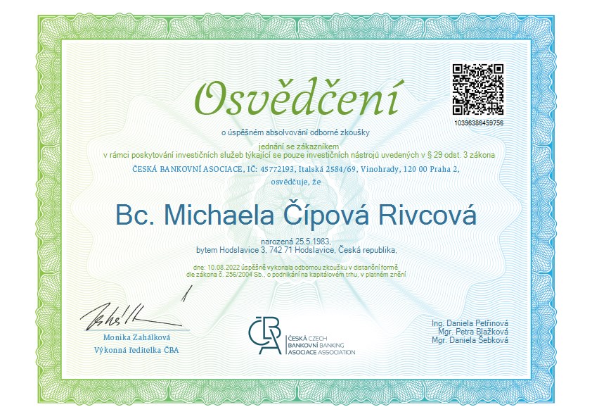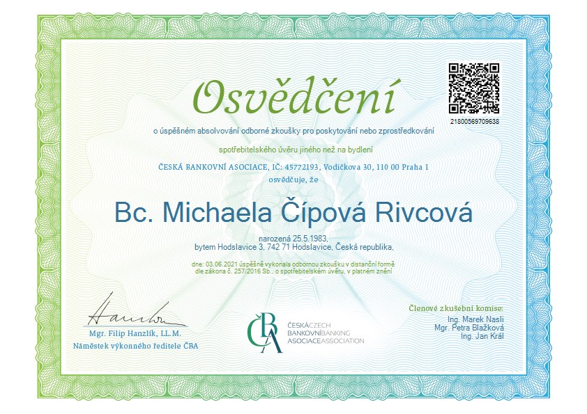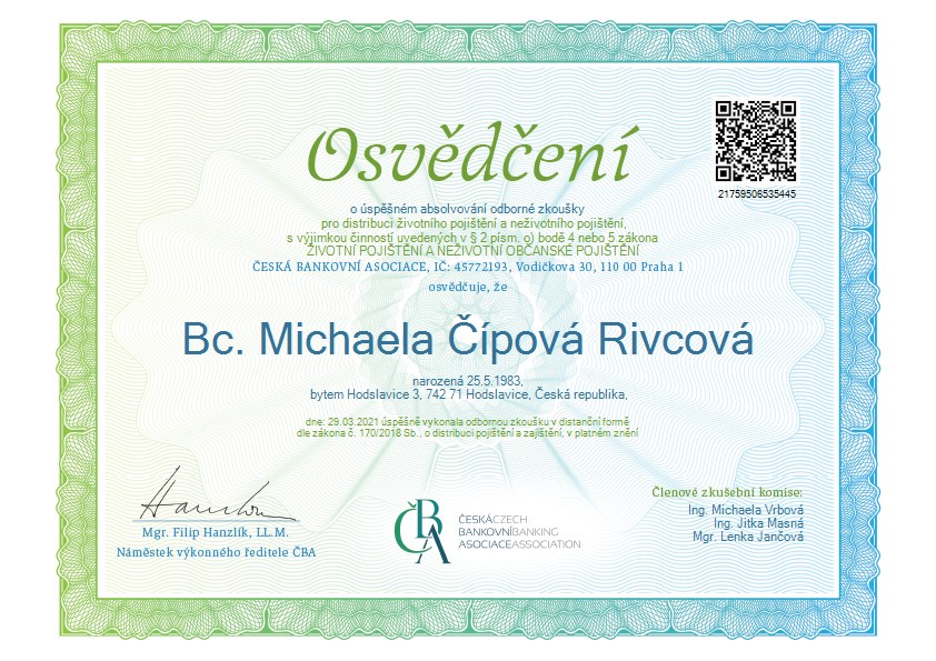 Bc. Michaela Čípová Rivcová Finanční konzultant Finanční plánování Investice Pojištění Úvěry Hypotéky napsat konzultantovi o konzultantovi web a sociální sítě